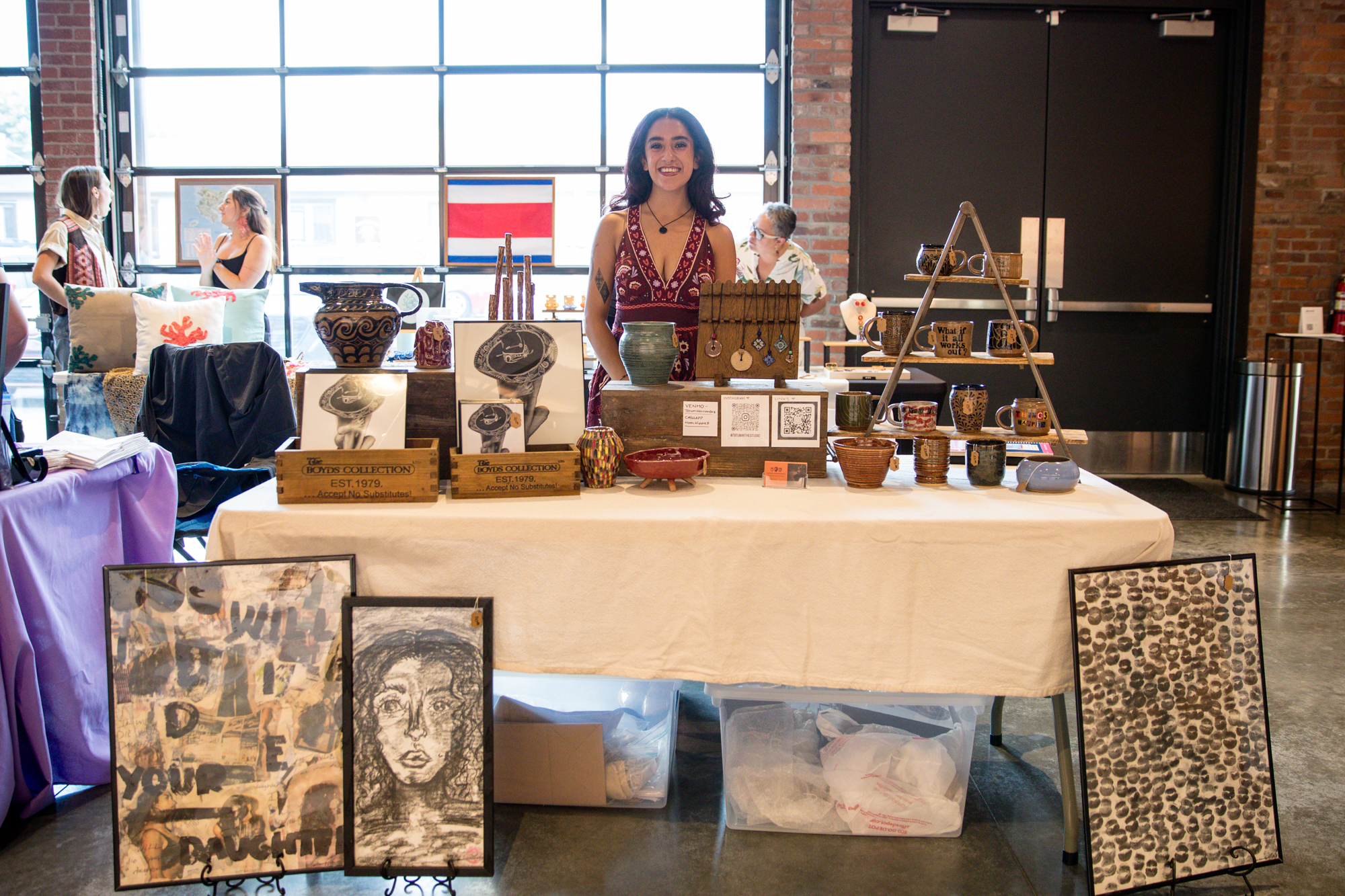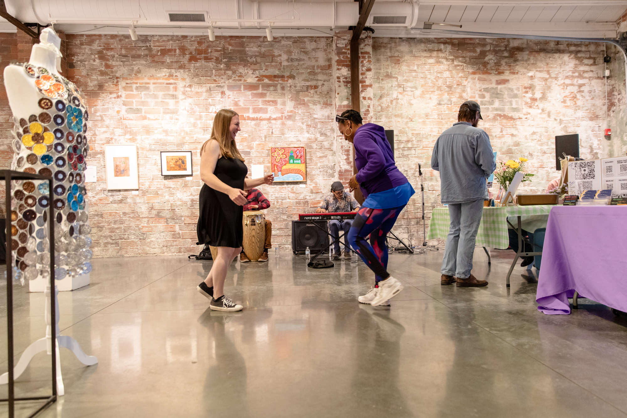 The Relate exhibition closed with a reception and artist market during Gallery Walk on Friday, October 3rd, 2025. The community joined together in celebration with live music by Palonegro Latin Jazz. There were empanadas and baked goods for sale. Exhibiting artists brought small art prints, jewelry and ceramics for sale. It was such a beautiful and lively gathering of art and culture and we can’t wait to celebrate again next year!