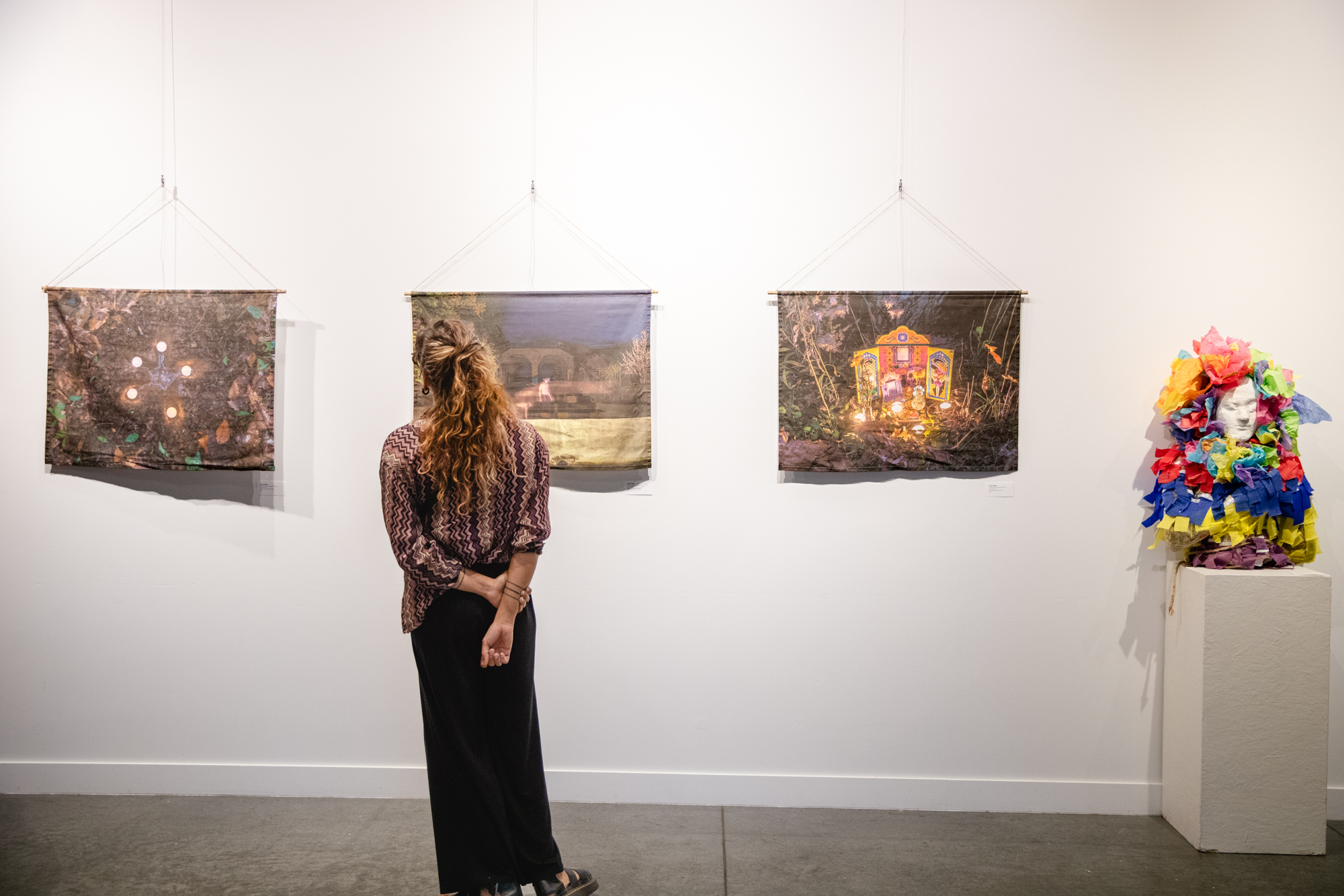 The Relate exhibition was inspired by the 2025 National Hispanic Heritage Month Theme: Collective Heritage: Honoring the Past, Inspiring the Future. In this group of work, collective heritage is represented through a wide range of stories about family, ancestry, identity, land and spirituality. Each exhibiting artist lends their unique perspective to the show: a deep longing to connect to a lost ancestry; the duty to educate and guide future generations who will tend to sacred lands; an affirmation of strength, resilience and belonging in the face of uncertainty.
